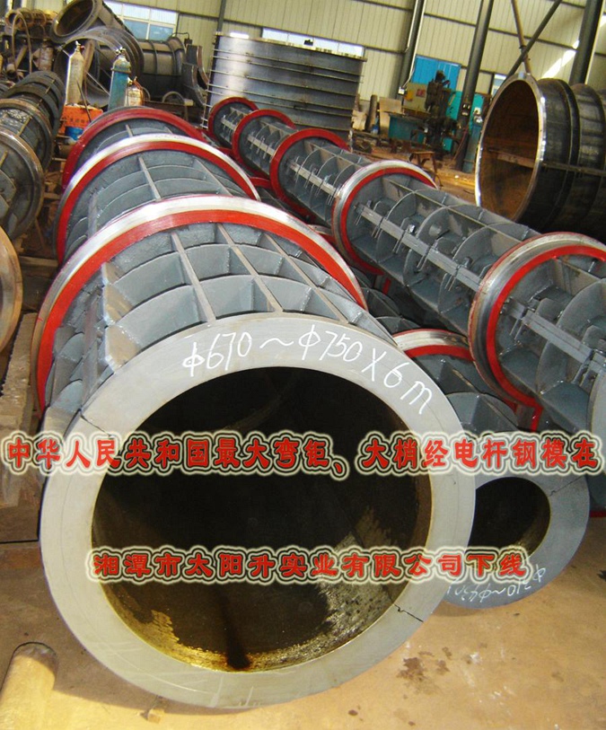 中華人民共和國最大大彎矩、大梢經電桿鋼模在湘潭市太陽升實業(yè)有限公司下線